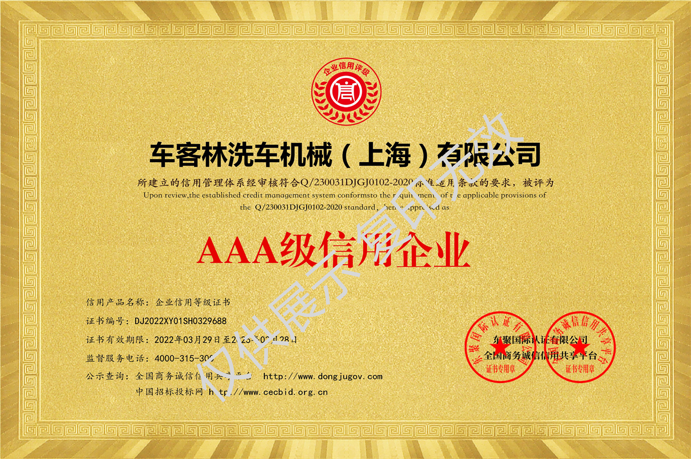 企業信用等級證書